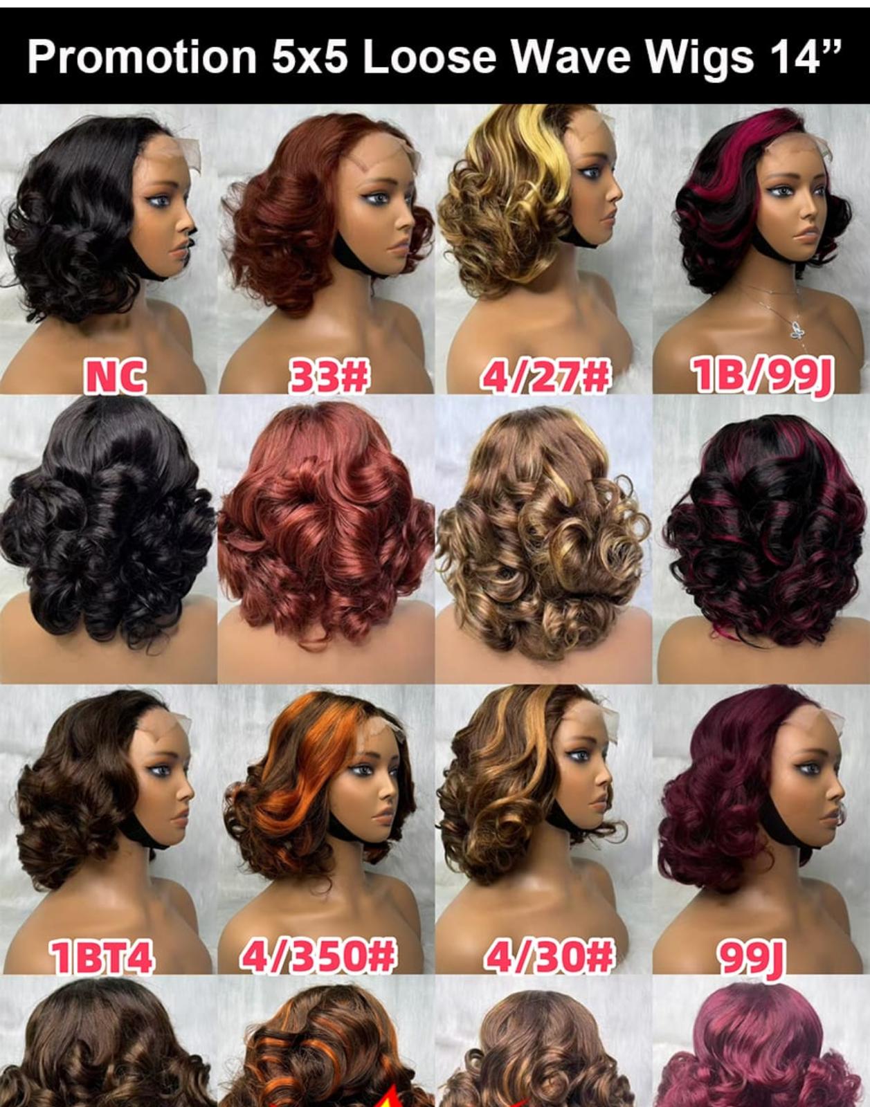 5×5 Lace Loose Wave Human Hair Wigs 14inch 280gram